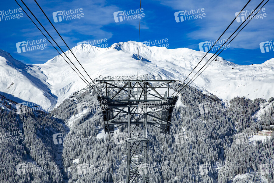 Symbolfoto, Symbolbild, Energie, Berge, Schweizer Alpen, Verkehrsmittel, Luftseilbahn, Förderseile, Seilbahnstützen, Hochgebirge, Seilbahnwesen, Drahtseil, Stahl, Tragseil, Kabine, Gondel, Schnee, Skifahren, Schlittenfahren, Schlitteln, Schlitten, Abfahrt, Langlauf, Pendelbetrieb, Umlaufbetrieb