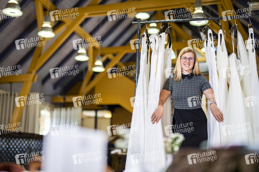 Julia Schwarz in ihrer Boutique 'Liebe' für nachhaltige Hochzeitsmode auf Burg Scharfenstein. Sie wird ein Teil der VOX-Serie 'Zwischen Tüll und Tränen' sein und Bräute bei der Wahl ihres Kleides beraten. Leinefelde-Worbis, 20.05.2021