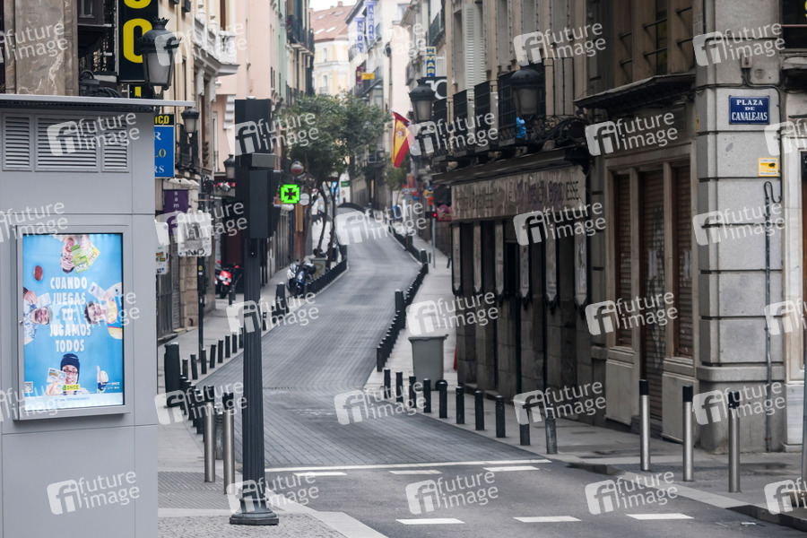 Die spanische Regierung hat den Ausnahmezustand wegen des Coronavirus COVID-19 erklärt. Die Bevölkerung steht 15 Tage zu Hause unter Quarantäne. Die spanische Polizei und Armee überprüfen Menschen, die durch die Straßen gehen. Erlaubt sind Gänge in Krankenhaus, in Supermärkte, Kioske und Apotheken, sowie das Ausführen von Haustieren und der Weg zur Arbeit. Madrid, 19.03.2020