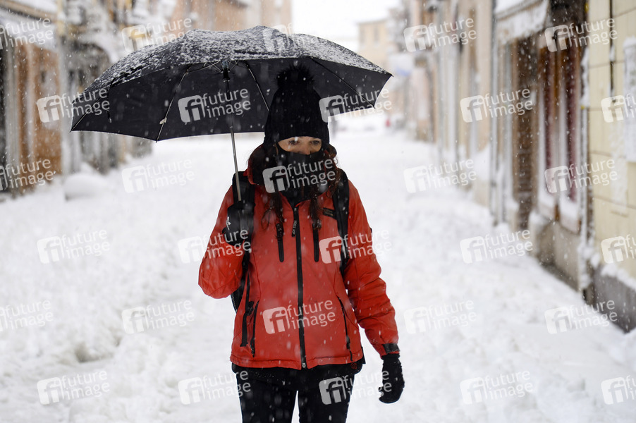 Das Sturmtief Filomena sorgt in der Region Madrid und anderen Teilen Spaniens mit starken Schneefällen für Chaos. Die Hauptstadt Madrid wurde durch historisch heftigen Schneefall lahmgelegt. Seit 50 Jahren hat es nicht so geschneit. Der Verkehr ist in weiten Teilen des Landes zusammengebrochen. Alcalá de Henares, 09.01.2021