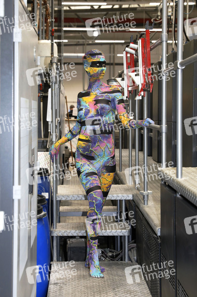 Jörg Düsterwald, einer der bekanntesten Bodypainting- und Bodyartkünstler Deutschlands macht auf seine ganz eigene Art auf die prekäre Situation freischaffender Künstler während der Corona-Pandemie aufmerksam: Unter dem Hashtag #WirzeigenFarbe hat der Hamelner Künstler in der Produktionshalle der Druckerei QUBUS media mit seinem Model Lisa ein ausdruckstarkes Live-Bodypainting inszeniert - denn Künstlerinnen und Künstler wie er sehen und fühlen sich derzeit wortwörtlich 'ausgezogen bis aufs letzte Hemd'. Und nichts symbolisiert diesen bekannten Spruch besser als ein Bodypainting auf nackter Haut in einer Umgebung, in der es jeden Tag um Farbe geht. Die Live-Performance fand mit dem zeitgleichen Druckstart von Jörg Düsterwald's neuem Premiumkalender 'Bodypainting in Nature 2021' statt. Hannover, 14.07.2020