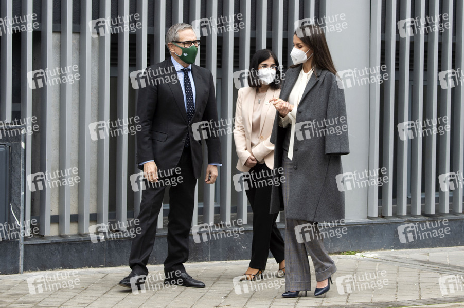 Carolina Darias, Ramon Reyes und Königin Letizia von Spanien bei der Ankunft zu einem Treffen der AECC Spanish Association Against Cancer anlässlich des Weltkrebstages. Madrid, 04.02.2021