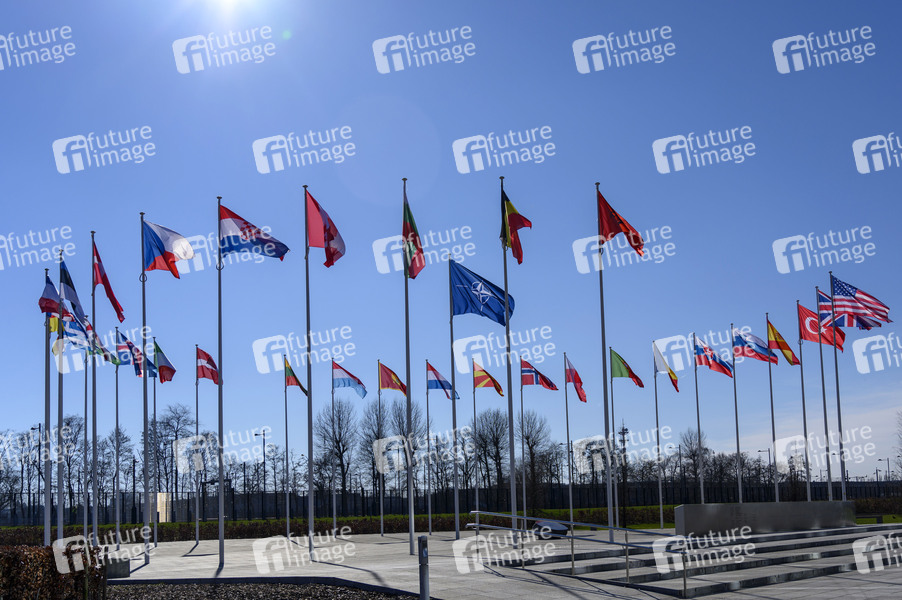 North Atlantic Treaty Organization, Nordatlantikpakt-Organisation, NATO, Organisation du Traité de l’Atlantique Nord, OTAN, Politik, Militär, militärischen Führung, Nordatlantikvertrag nach Artikel 51 der UN-Charta, Nordatlantikrat, Architektur, Fahnen, Flaggen, Symbolbild, Symbolfoto