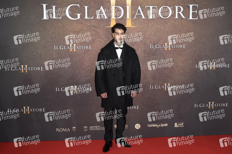Tony Effe bei der Premiere des Kinofilms 'Il Gladiatore II / Gladiator II' im Auditorium Parco della Musica. Rom, 145.11.2024