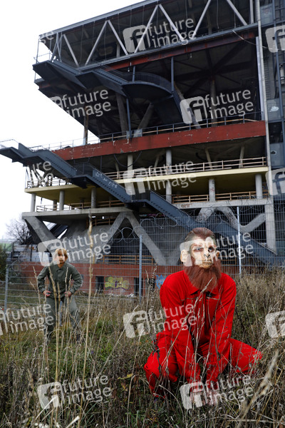 GEEK ART - Bodypainting and Transformaking: 'Planet der Affen' Photoshooting mit den Maria Skupin und Paul Skupin als Schimpansen auf dem Expo-Gelände in Hannover. - Ein Projekt des Fotografen Tschiponnique Skupin und des Bodypainters und Transformakers Enrico Lein