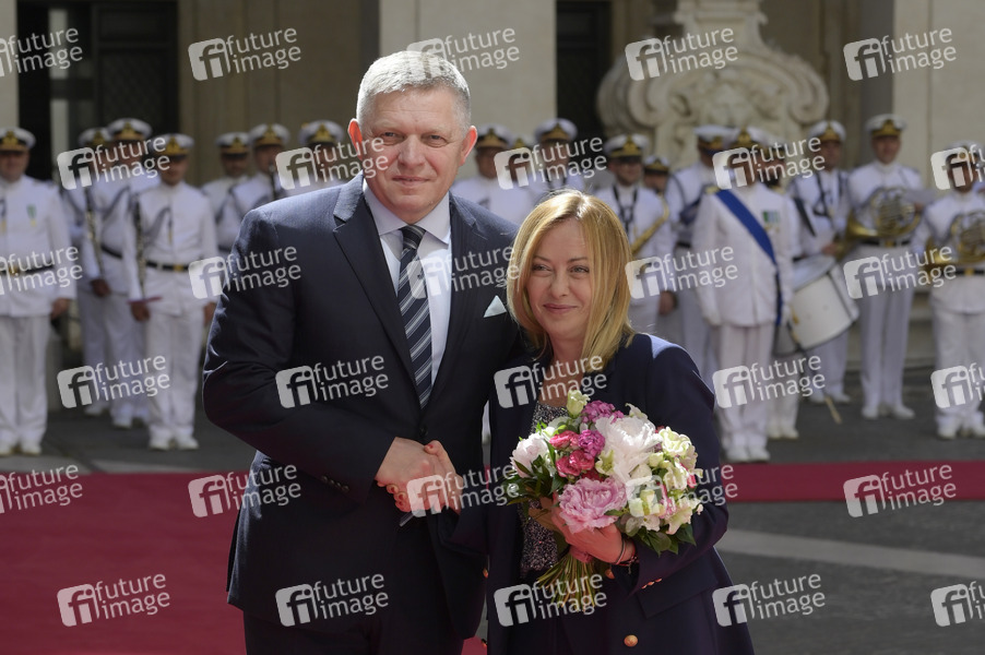 Politik, Staatsbesuch, Staatsvisite, Gespräch, bilaterale Gespräche, Treffen, Diplomatie, Staatsgast, Politiker, Ministerpräsident der Slowakei, SMER - sociálna demokracia, Politikerin, Ministerpräsidentin von Italien, Fratelli d'Italia, FdI