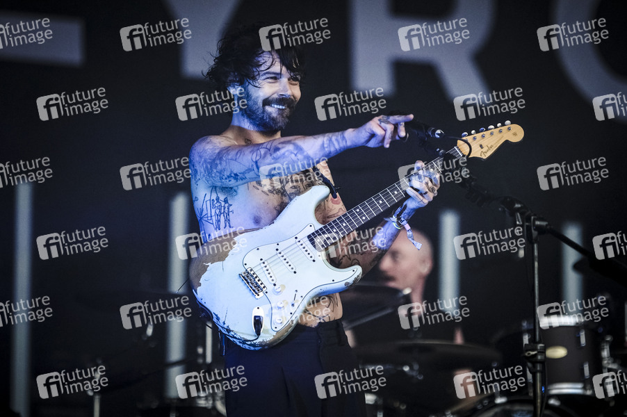 Simon Neil von Biffy Clyro live auf dem Glastonbury Festival 2025 auf der Worthy Farm. Pilton, 27.06.2025