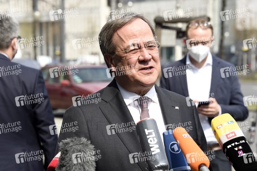 Armin Laschet bei einem Pressestatement zur Kanzlerkandidatur von Annalena Baerbock vor dem Konrad-Adenauer-Haus. Berlin, 19.04.2021