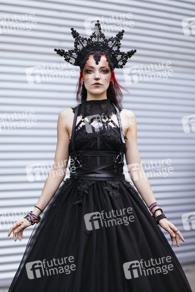 Festivalbesucherin auf dem XV. Amphi-Festival 2019 im Tanzbrunnen. Köln, 20.07.2019