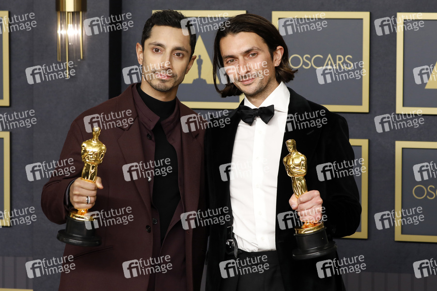 Riz Ahmed und Aneil Karia mit den Oscars für den besten Kurzfilm 'The Long Goodbye' im Press Room der Oscar Verleihung 2022 / 94th Annual Academy Awards im Hollywood & Highland Center. Los Angeles, 27.03.2022