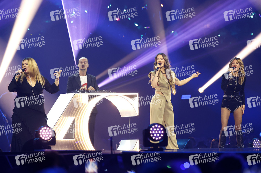 Alina, Alex Christensen, Joelina Drews und Ella Endlich in der TV Show 'Schlagerbooom 2025 - Alles funkelt! Alles glitzert!' in der Dortmunder Westfalenhalle. Dortmund, 18.10.2025
