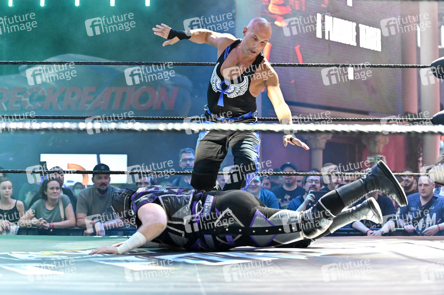 All Elite Wrestling auf der Gamescom 2022 auf dem Gelände der Kölnmesse. Die Gamescom ist die weltweit größte Messe für Computer- und Videospiele, gemessen nach Ausstellungsfläche und Besucheranzahl. Zahlreiche Hersteller aus aller Welt präsentieren hier ihre neue Soft- und Hardware. Köln, 25.08.2022