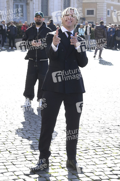 Samurai Jay bei der Ankunft der Teilnehmer vom Festival di Sanremo 2026 zum Empfang beim italienischen Präsidenten auf der Piazza del Quirinale. Rom, 13.02.2026