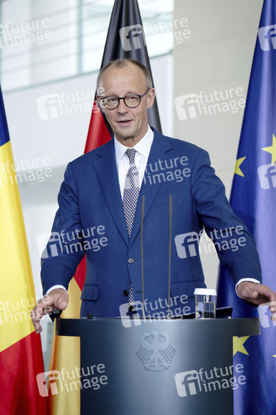 Friedrich Merz beim Empfang des Präsidenten von Rumänien zu einem gemeinsamen Gespräch mit anschließendem Pressestatement im Bundeskanzleramt. Berlin, 18.07.2025