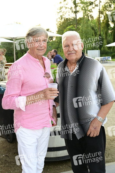 Wolfgang Stiebritz und Detlef Heising bei der Premiere des Theaterstücks 'Maxe Baumann - Ferien ohne Ende' während der Beelitzer Festspiele 2025 auf der Freilichtbühne. Beelitz, 14.08.2025