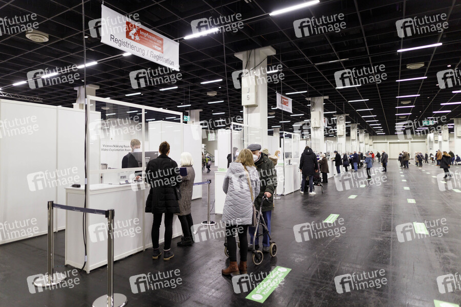 Das Kölner Impfzentrum in den Hallen der Koelnmesse hat eröffnet. Zuerst werden dort nun die Über-80-Jährigen geimpft – vorausgesetzt sie haben einen der Impftermine bekommen. Aufgrund der Verzögerung bei den Impfstoff-Lieferungen der Hersteller Biontech und Pfizer musste der Impfstart in NRW bis nun verschoben werden. Elisabeth Steubesand, mit 105 Jahren die älteste Kölnerin, war die erste Patientin, die im Impfzentrum ihre Impfung erhielt. (Themenbild, Symbolbild) Köln, 08.02.2021
