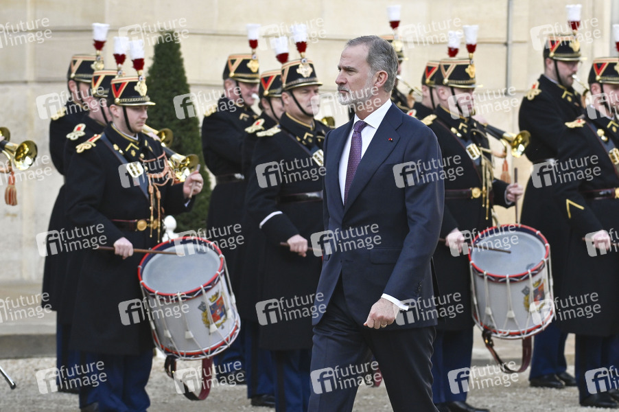 König Felipe VI. von Spanien beim Empfang vom spanischen König zu einem Arbeitsessen im Élysée-Palast. Paris, 13.01.2026