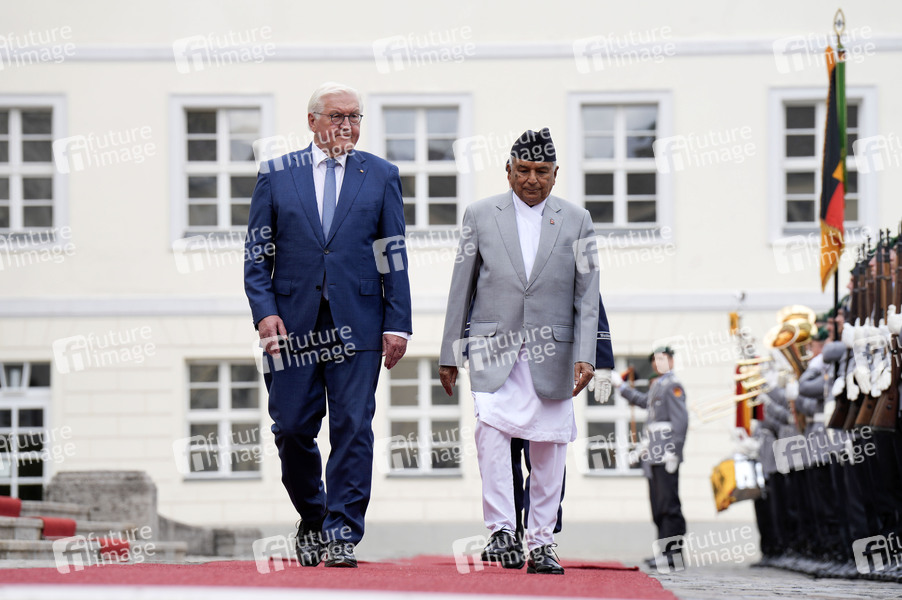 Frank-Walter Steinmeier und Ram Chandra Paudel beim Empfang des Präsidenten von Nepal mit militärischen Ehren im Schloss Bellevue. Berlin, 17.06.2024