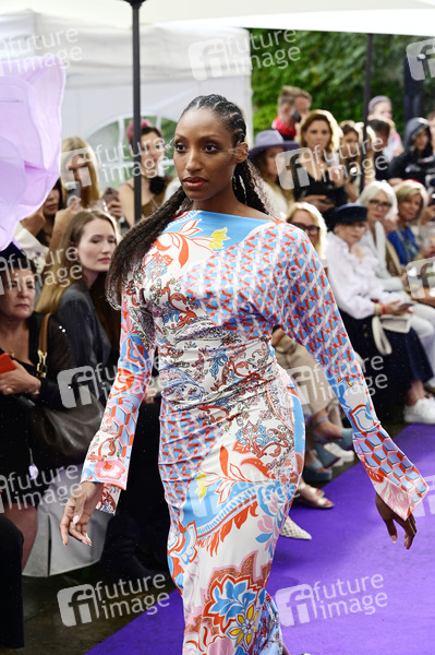 Model bei der Anja Gockel Fashion Show 'Let the Birds Fly' auf der Berlin Fashion Week S/S 2025 im Paris44. Berlin, 02.07.2024
