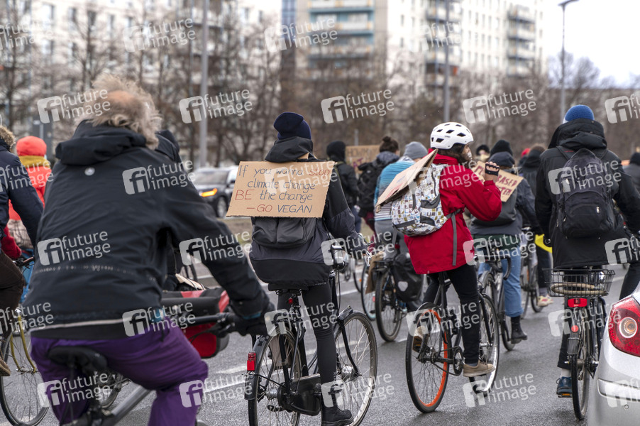 Am Freitag finden mehrere Demonstrationen zum globalen Klimastreik von Fridays for Future in Berlin statt. Auf dem Alexanderplatz startet eine antikapitalistische Fahrraddemo zum Potsdamer Platz. Berlin, 19.03.2021