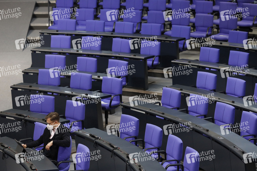 Sitzungssaal der 219. Sitzung des Deutschen Bundestages im Reichstagsgebäude. Berlin, 26.03.2021