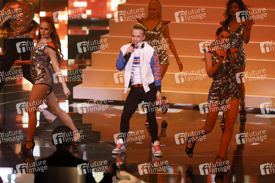 Jonas Weisser in der zweiten Live-Mottoshow der 16. Staffel der RTL-Castingshow 'Deutschland sucht den Superstar / DSDS 2019' im MMC Coloneum. Köln, 13.04.2019
