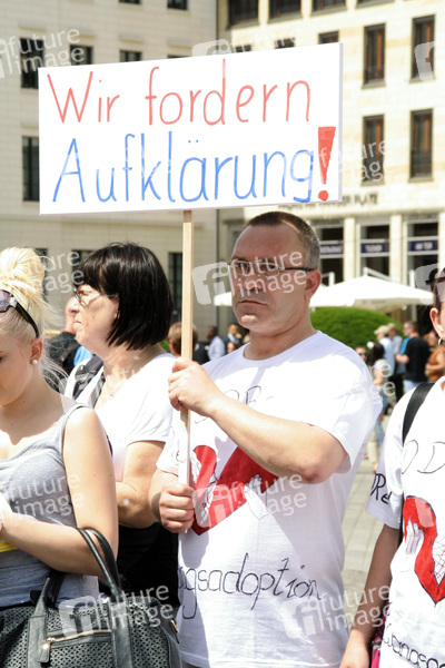 Eltern und Kinder, die in der DDR von Zwangsadoption betroffen waren, suchen ihre Angehörigen. Jugendämter und Behörden lassen sie im Stich. Aus diesem Grunde veranstaltete der Verein 'Zwangsadoption' gemeinsam mit dem UOGK (Union der Opferverbände Kommunistischer Gewaltherrschaft e.V.) eine Protestveranstaltung.Berlin, 25.05.2014