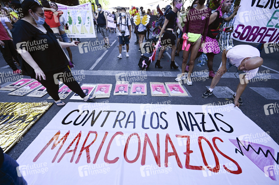 Wegen der Coronakrise nimmt die LGBT-Community viele ihrer Veranstaltungen online wahr. Etliche Aktivisten gingen trotzdem zur Guia del Orgullo LGTBI / Gay Pride Parade 2020 auf die Straße. Madrid, 28.06.2020