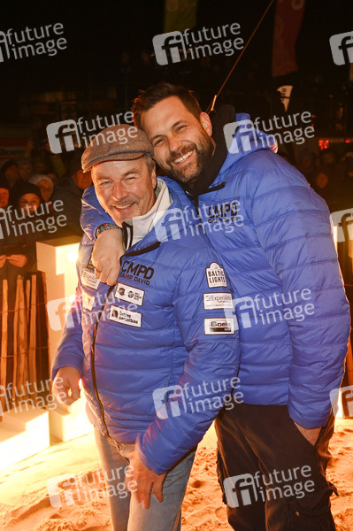 Till Demtroeder und Matthias Killing beim Opening der Baltic Lights 2025 mit Fackellauf an der Seebrücke Heringsdorf. Heringsdorf, 28.02.2025