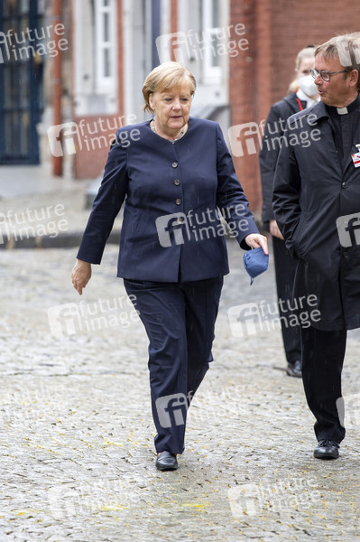 Angela Merkel und Karl Jüsten beim ökumenischen Gottesdienst für die Opfer der Flutkatastrophe im Hohen Dom zu Aachen. Aachen, 28.08.2021