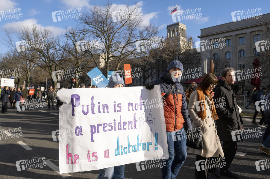 Ukrainer, Berliner und viele in Berlin lebende Russen protestieren gegen den Krieg Russlands gegen die Ukraine bei der Demonstration unter dem Motto 'Russland gegen Putin!'. Berlin, 01.03.2025