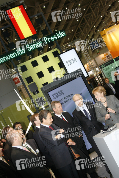 Eröffnungsrundgang von Bundeskanzlerin Merkel und Spaniens Ministerpräsident Zapatero auf der CeBIT 2010 (Centrum der Büro- und Informationstechnik), der weltgrößten Messe für Informations- und Computertechnik auf dem Messegelände in Hannover. Am Messestand von IBM