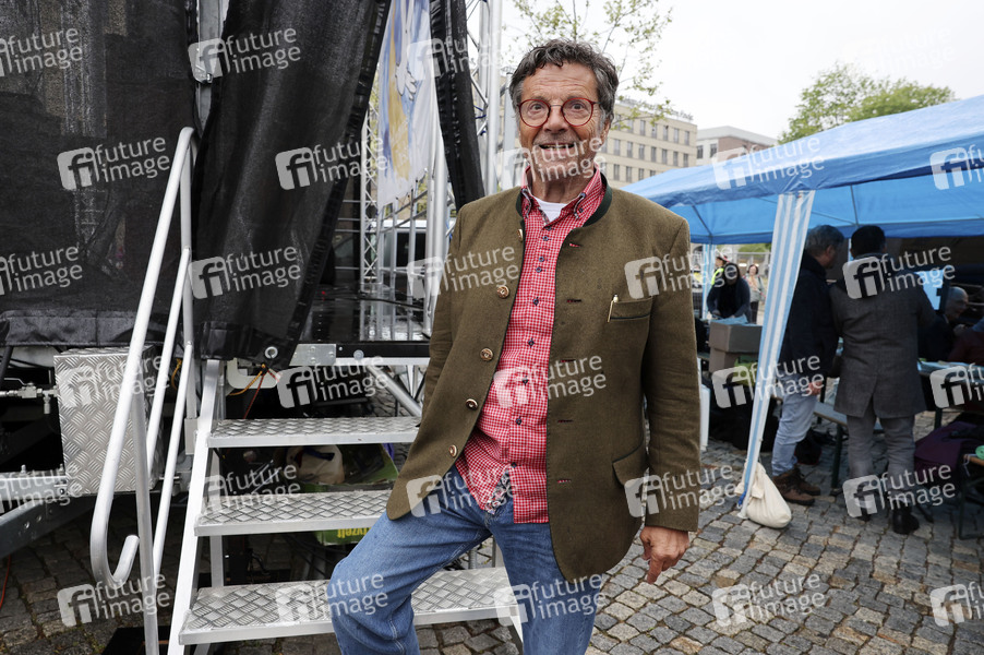 Diether Dehm bei einer 'Friedensprozession' am Karfreitag unter dem Motto 'Frieden kennt keine Brandmauern' auf dem Postplatz. Dresden, 18.04.2025