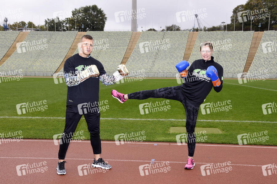 Alem Begic und Marie Lang beim Fototermin zur sportichen '#WocheChallenge' im Olympiastation München. Unter dem Motto 'Wir können was bewegen!' ruft die Welthungerhilfe zu dieser Challenge auf und bittet um Spenden für eine Welt ohne Hunger. München, 13.10.2020