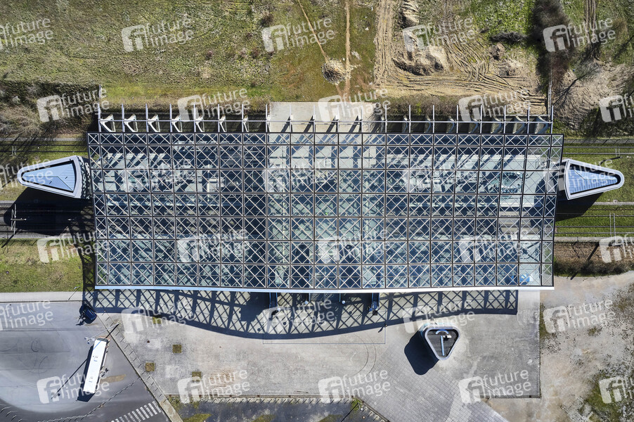 Luftbild, Expogelände, Expo-Park Hannover, Expo 2000, U-Bahn, üstra, GVH, Großraumverkehr, Haltestelle, Endhaltepunkt der Stadtbahn-Linie 6, Messe Hannover, Haltestelle Messe/Ost
