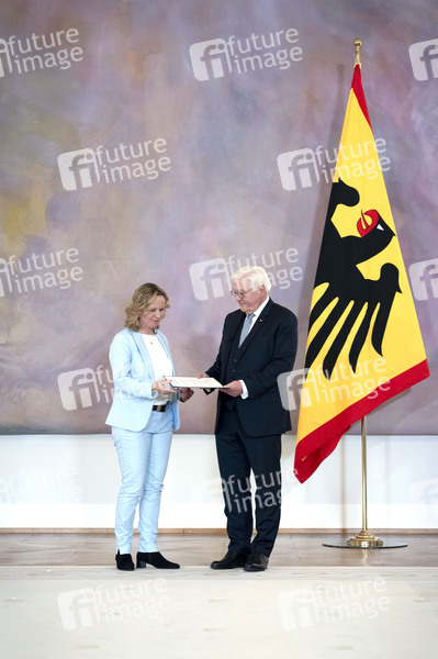Steffi Lemke und Frank-Walter Steinmeier bei der Entlassung der Bundesregierung des 20. Deutschen Bundestages durch den Bundespräsidenten im Schloss Bellevue. Berlin, 25.03.2025
