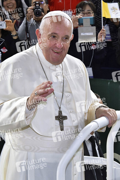 Papst Franziskus bei seiner Ankunft zur Heiligen Messe im Tokyo Dome. Tokio, 25.11.2019