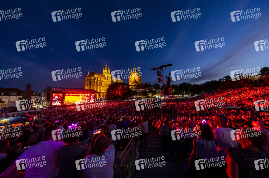 Publikum beim Konzert von Roland Kaiser zu seiner Tour '50 Jahre - 50 Hits - Die große Tournee zum 50. Bühnenjubiläum' auf dem Domplatz. Erfurt, 28.06.2024