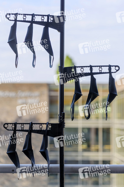 Gereinigte Mundschutze zum Trocknen aufgehängt