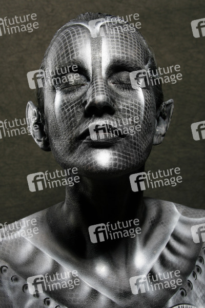 Bodypainting, Erotik, Frau, nackt, drinnen, weiblich, Monster, Außerirdische, Alien, Echse, Körperkunst, Kunst, Malerei, monochrom, erotic, woman, nude, indoor, female, monochrome, lizard, body art, body painting
