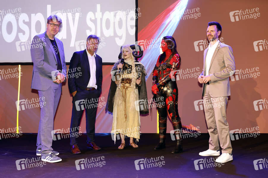 Michael Kellner, Robert Habeck, Felix Falk und Cosplayer der weltgrößten Computerspielmesse Gamescom 2024 in der KoelnMesse. Köln, 22.08.2024