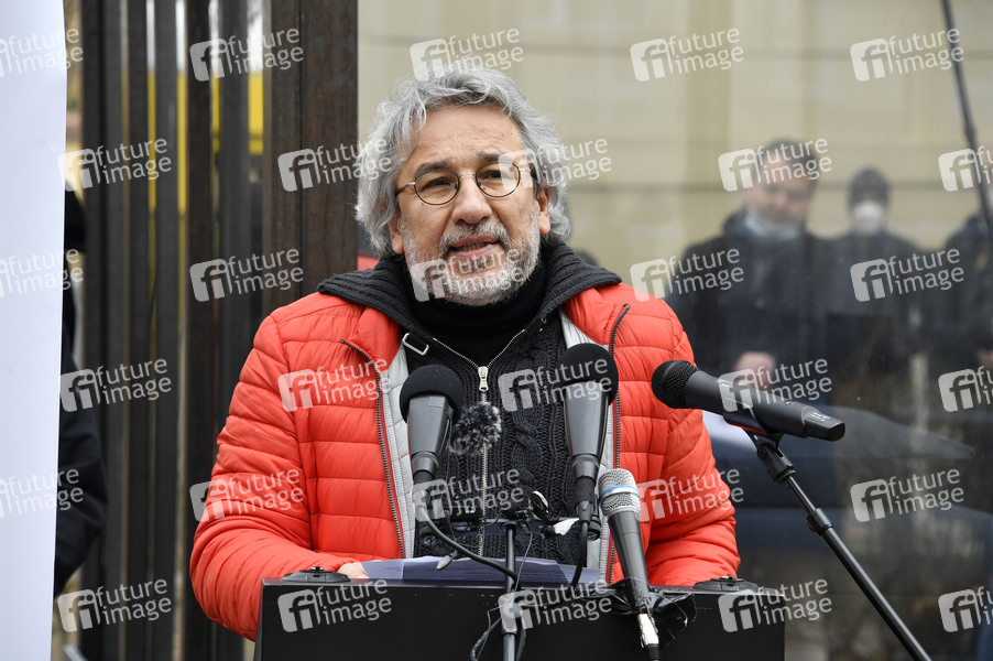 Can Dündar bei der Pressekonferenz des KulturForum TürkeiDeutschland zur Solidarität mit den gesamten demokratischen Kräften in der Türkei, insbesondere mit inhaftierten Schriftsteller*innen, Künstler*innen, Journalist*innen, Gewerkschafter*innen und Politiker*innen vor dem Maxim Gorki Theater. Berlin, 23.03.2021
