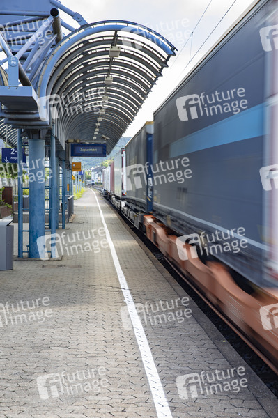 Boppard Hauptbahnhof liegt an der linksrheinischen Fernverkehrstrasse in Rheinland-Pfalz und ist ein Trennungsbahnhof für Regionalexpress- und Regionalbahnzüge. Boppard, 31.05.2021