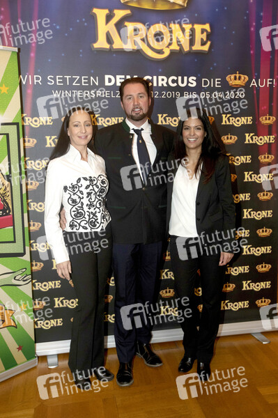 PK, Pressekonferenz, Unterhaltung, Entertainment, Prominenz, Kultur, Zirkus, Circus, Tiertrainerin, Chefin des Circus Krone, Dompteur, Tiertrainer, Schauspielerin, Moderatorin