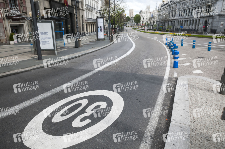 Leere Straßen im Stadtzentrum - Tag 35 seit Verhängung des Ausnahmezustands durch die spanische Regierung wegen der Coronakrise. Madrid, 18.04.2020