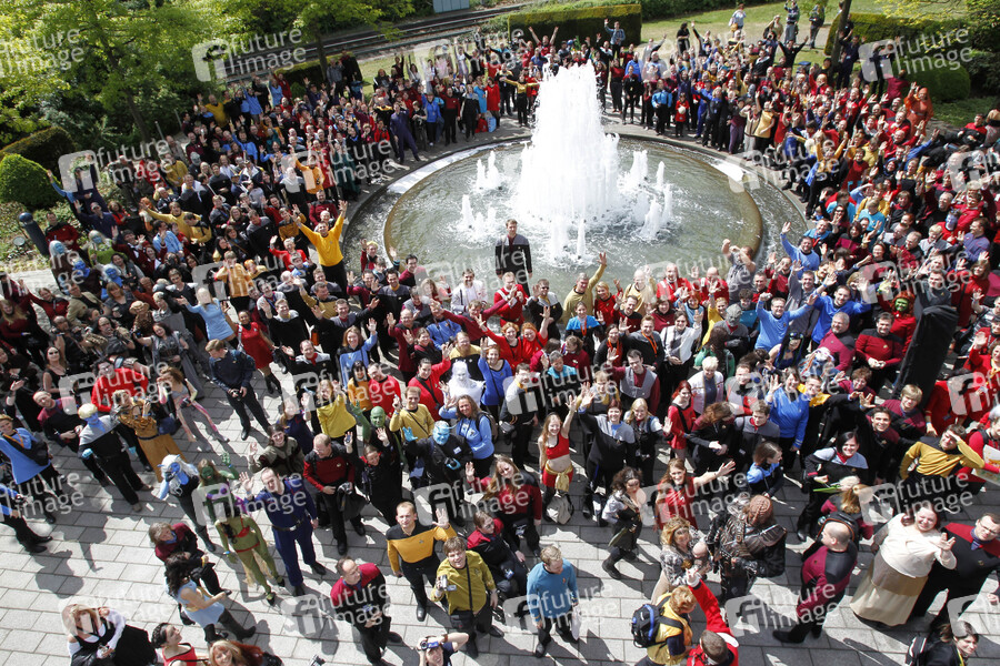 FedCon XIX im Bonner Maritim Hotel, Tag 2. Neuer Weltrekord für ein Treffen von Trekkies in Kostümen und Uniformen aus den Star Trek Serien und -Filmen für das Guinness Buch der Weltrekorde. 507 Fans trafen sich im Innenhof des Maritim Hotels in Bonn