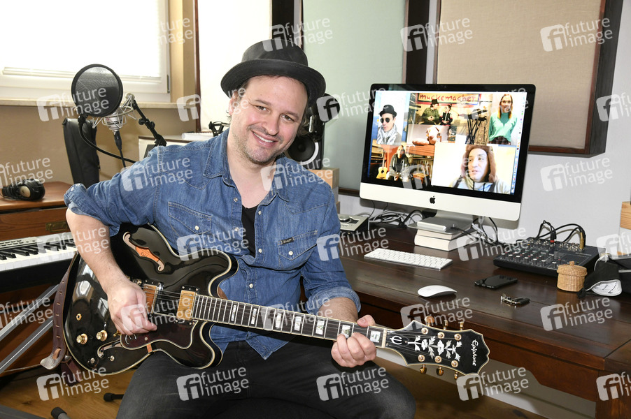 Phil Höcketstaller von Hundling beim aktuellen Tonstudio-Bahnhofsmission Spezial mit dem aktuellen Video 'Wofür?' in der Lockdown Version in seinem Tonstudio bei München. 17.02.2021
