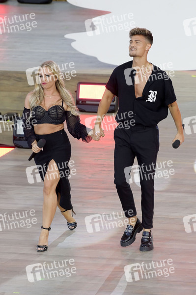 Marina Marx und Karsten Walter in der TV Show 'Die große Schlagerstrandparty 2022 - Es geht wieder los!' im Amphitheater Gelsenkirchen. Gelsenkirchen, 09.07.2022