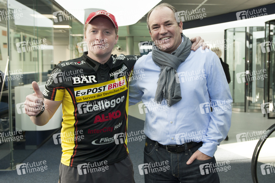Pressetermin zum Guinness Weltrekord-Versuch. Joey Kelly will parallel zum RTL-Spendenmarathon eine herunterfahrende Rolltreppe 24 Stunden lang hochsteigen im RTL-Gebäude, Köln