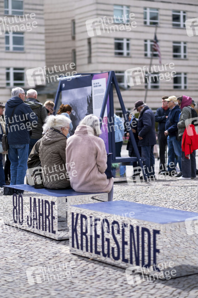 Besucher auf der Open-Air-Ausstellung zum 80. Jahrestag des Sieges über den Nationalsozialismus am Brandenburger Tor. Berlin, 04.05.2025
